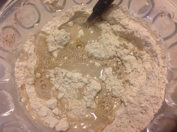 Añadir agua y mezclar hasta una bola de las formas de masa
