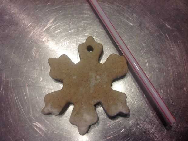Después de endurecido y fresco tomar alguna cadena y poner un extremo por el agujero