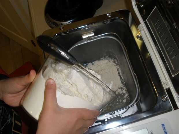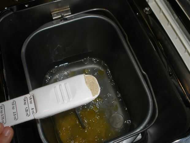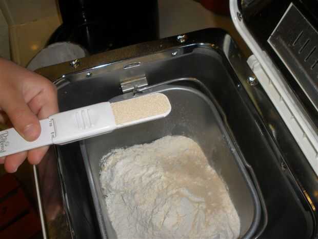 (3) Coloque los ingredientes secos, excepto la levadura, además de los ingredientes líquidos.