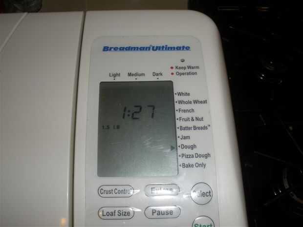 Ajustar la hora correcta en la máquina de hacer pan, presionar start y esperar. El tiempo total para mi máquina de 1 hora, 27 minutos, declaró.