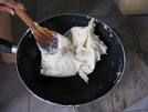 Poner la harina, sal y 1/2 taza de agua en el recipiente de mezcla. Mezclar, añadir gradualmente el agua. Trillar la harina por 10 minutos. Después de eso, el paquete en los cierres de la tienda de unos 30 minutos. Luego poner y trillar con color. Vamos a jugar!