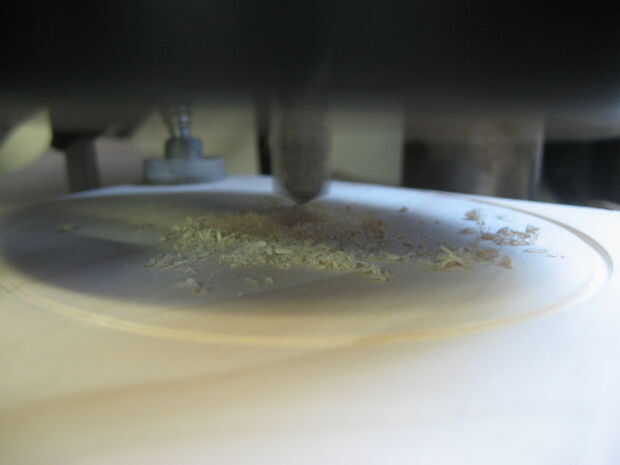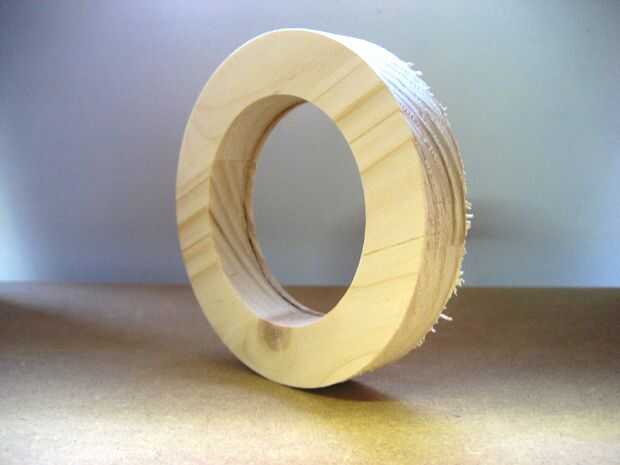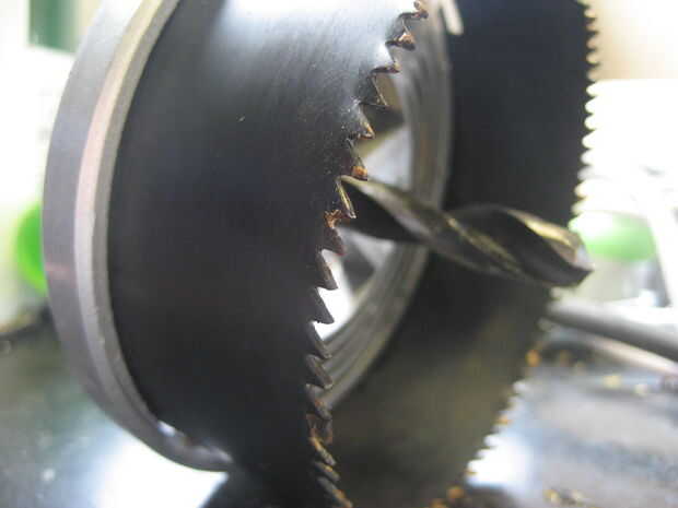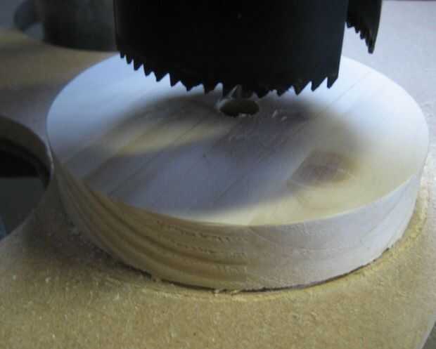 Vio que tres círculos de 95 mm de diámetro utilizando la sierra 95 mm. En uno de estos círculos se ha visto un agujero de 60 mm mediante el uso de la Sierra de agujero de 60 mm. Este círculo será la pieza central.
