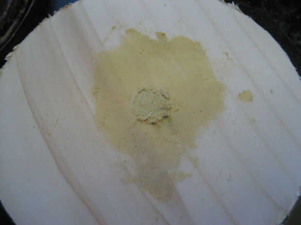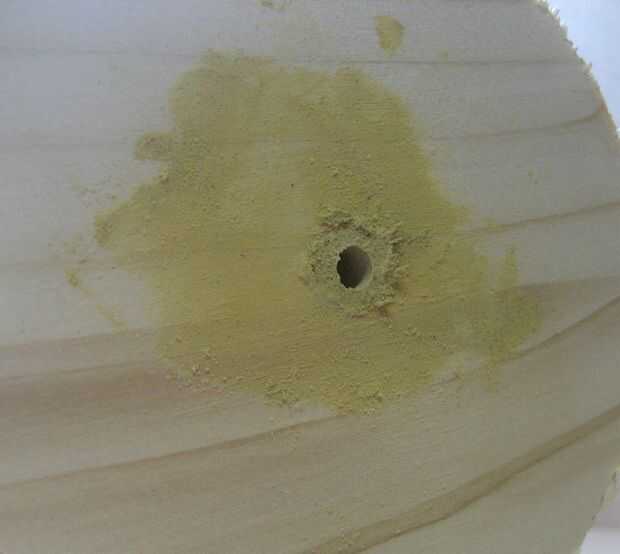 • Llenar el agujero de la madera de goma de pizca de círculo superior. Cuando la pasta de madera endurecida  Perfore un agujero de 4 mm en el centro del círculo de la perilla del cajón.