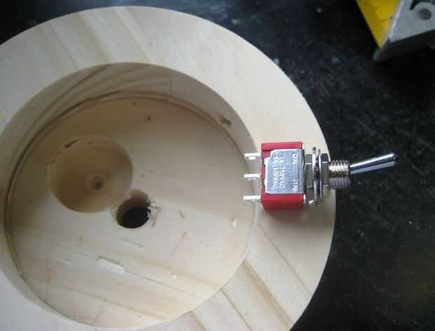 • Perfore un agujero de 6 mm en el lado del anillo central del interruptor. Marca donde el interruptor se y perfore un agujero de 20 mm donde hiciste la marca.
