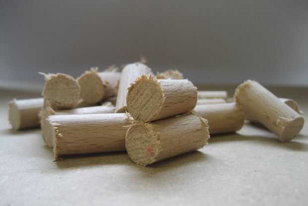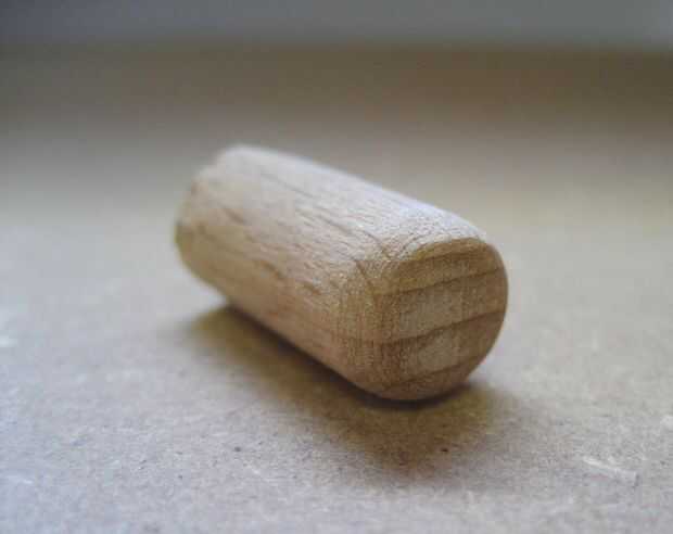 VI pedazos (20 mm) del palo de madera y lijar hasta que tenga una tapa redonda.