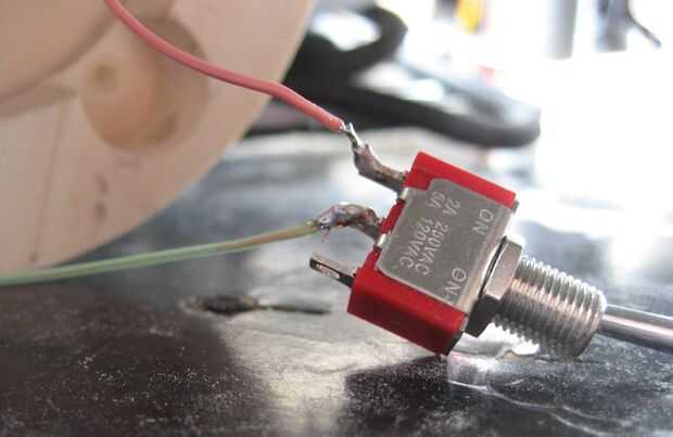 Solde el cable positivo al interruptor. Tome un cable de repuesto y conectar al switch. Si tienes un interruptor de palanca como la mía tienes que conectar el cable de repuesto para el conector del medio.