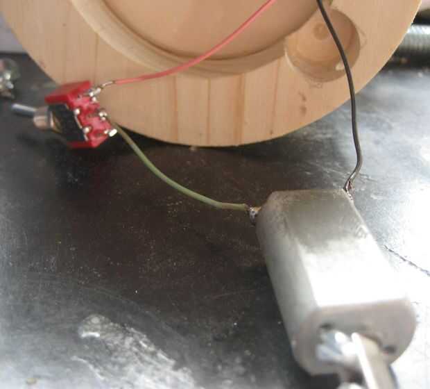 La negativa del cable USB a un conector del motor de la soldadura. Soldar el cable abierto que viene del interruptor (cable verde en cuadro) en el otro conector del motor.
