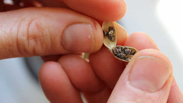 Otra vez usando el mortero y maja, ligeramente romper las cáscaras del cardamomo y quitar las semillas del interior. No aplastar las semillas todavía. Transferir al recipiente.
