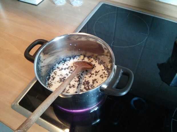 El té debe suben y bajan varias veces. Por este medio se convierte en un poco cremoso.