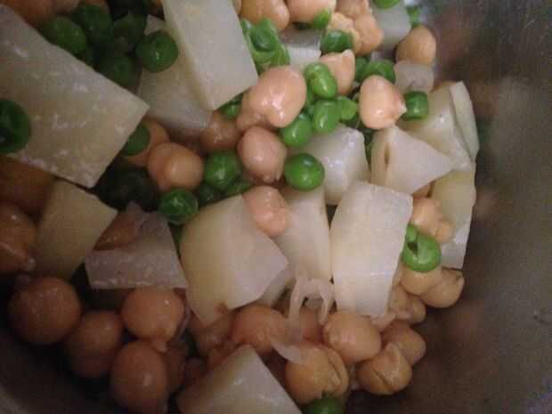 chuleta de vegetal es uno del chat de comida en la calle Aguado boca indio famoso.Ingredientes necesarios para la preparación de curry(ragda):Cocido de garbanzos 500g1 cebolla2 tomateschutney de Tamarindo según gustoChat masala o polvo de mango secop