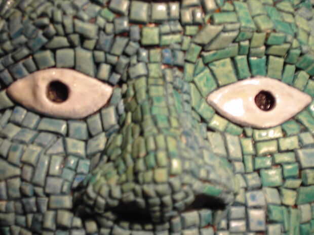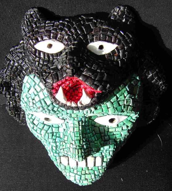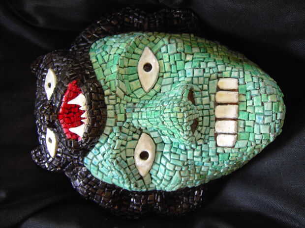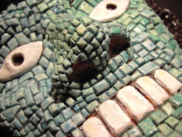 Dientes de Jaguar - éstos eran esculpidos sobre las baldosas y luego sacados una vez seco, pintar y luego encolar.