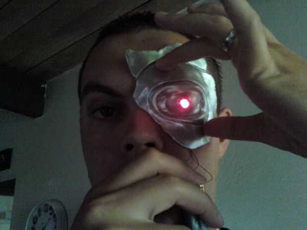 Primero, tomar su máscara recién secado y poner en su cara. Mirarse en el espejo. Muy impresionante ¿EH? Ahora que usted ha dicho "Volveré," "Ven conmigo si quieres vivir", y "Hasta la Vista, baby", quite la mascarilla y coloque nuevamente en el positivo. Tomar dos cables, cinta los cables (uno para el lado positivo) y otro al lado negativo a la batería y la soldadura de los cables a un LED para ver si te enciende. Para mí, había un montón de ensayo y error. Demasiado poder, no hay suficiente energía, etc.. Lo que finalmente hice fue configurar un experimento y tomó cuatro baterías diferentes y cuatro diodos LED y averiguado que combinación me dio la luz más brillante pero no demasiado caliente (puesto que va a montarse básicamente en la frente) pero también duró un tiempo (ya que yo estaba planeando en usar mío tanto tiempo como sea posible). Otra vez, ya que no planeo hacer un instructable, no mantenga pista en cuanto a que combo LED y batería utiliza en última instancia. Una vez haya decidido qué configuración que utilizará, desconecte la batería o ir a comprar uno nuevo para la gran noche o noches que va a usar la máscara. A continuación, toma los acentos brillante y aplique una pequeña cantidad a la rueda de Lego y deje que se seque según las instrucciones. Usando los acentos brillantes creará un bonito brillante "burbuja" y ayudarán a difundir la luz que da un mejor brillo rojo. Finalmente, una vez seco el acento brillante, cinta del LED y cables en la parte posterior de la máscara y prueba con la batería de la luz y la difusión. Si su a su gusto, seguir adelante. Si no, no estoy muy seguro qué podría hacerse para ayudar a la difusión. Tal vez un poco de pintura de aerosol de cristal glaseado (que tengo para otro DIY pero no en el momento porque estaba feliz con mi difusión) en el acento brillante.