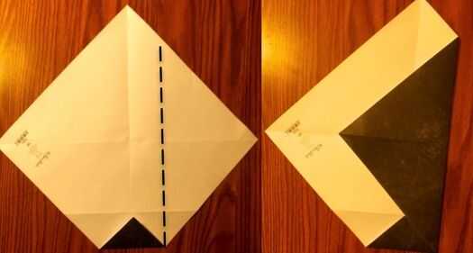 Doblar a la derecha para que la parte inferior del triángulo coincide con el pequeño triángulo negro.