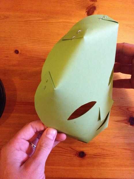 Este siguiente es un poco incómodo. sobre los bordes de vuelta en el corte en la parte superior y les de la grapa juntos, repetir este proceso para todos los cortes. Nota: puede que desee asegurarse de que las grapas van desde el interior de la máscara hacia fuera como serán menos propensos a enredar en el pelo.