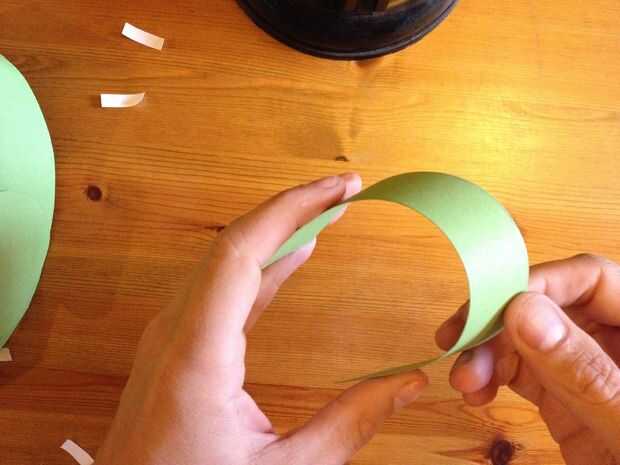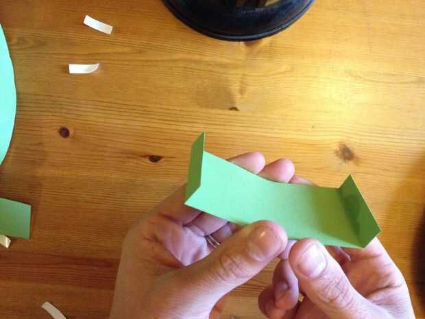 Curva la tarjeta como con las mejillas y entonces doble las lengüetas en los extremos. las pestañas deben doblar bajo la curva (como un D de Capital)