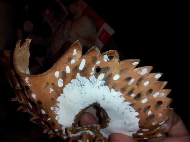 El mejor lugar para poner los orificios para los vínculos es aproximadamente 1/2" del borde de la máscara con los ojos. Utilizar la perforadora para hacer los agujeros
