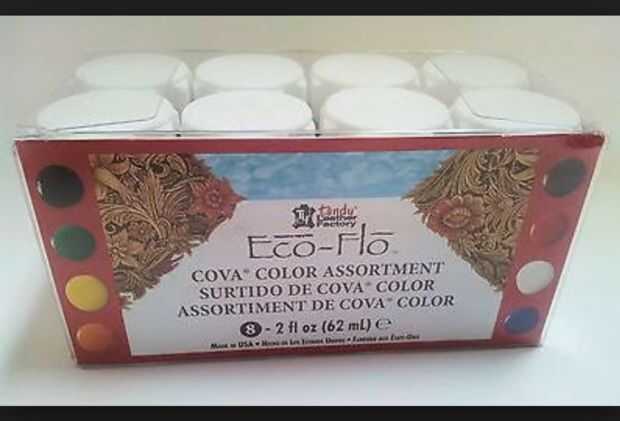 2. flujo Eco cuero pintura colores de su elección y un sellador de brillo Super se pueden comprar en cuero de Tandy.