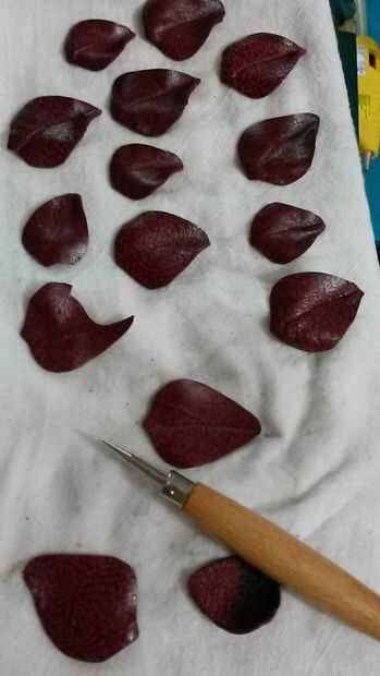 Humedece los pétalos y utilizar una herramienta de modelado de punta de bola sobre una superficie blanda, como una toalla doblada para arriba, para crear un centro de "vena" en cada pétalo.