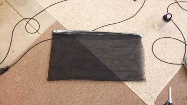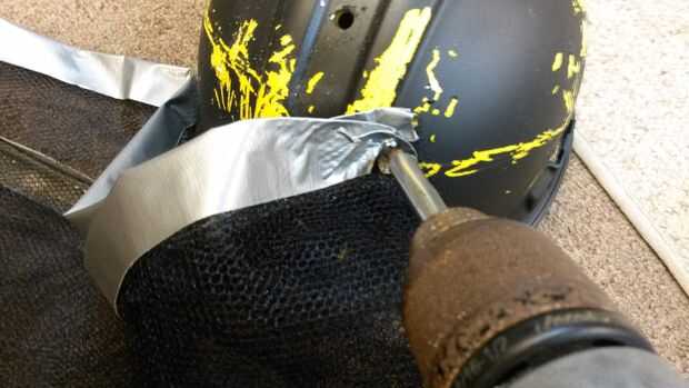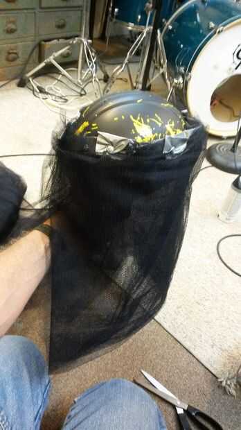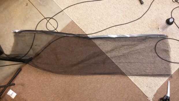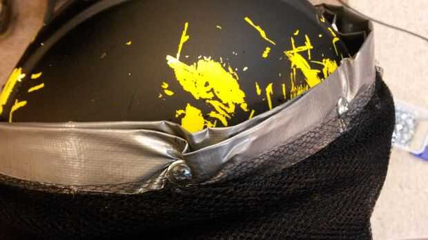 Primera foto muestra cuatro capas de malla a tela negro. Segunda foto es el doble (8 capas). Cinta del conducto es para mantener todo junto hasta que Tek-atornillados para el casco. Resultó el cuello era demasiado transparente, así que añadido cuatro capas más... mucho mejor... no puede ver mi rostro pero todavía puede ver muy bien desde el interior y aún un montón de ventilación.