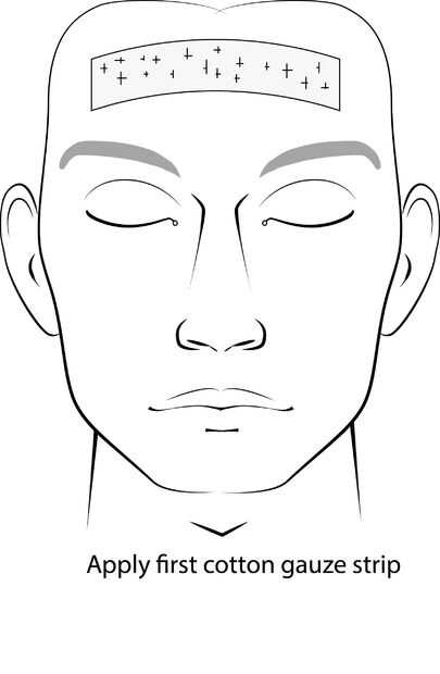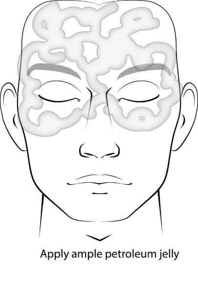 Trazado de las tiras de Gasa de algodón para facilitar el acceso a ellos. Cubrir las partes pertinentes de mi cara con una capa gruesa de vaselina, volviendo casi a mis oídos, más allá de mi línea del cabello, alrededor de los ojos y extra gruesa en mis cejas. Saber que ningún pelo en la cara o la cabeza que rodea el yeso, no importa cuán bien bañado en vaselina, se encajona en el yeso y es probable que deba ser arrancado! Esto puede incluir las cejas y las pestañas! Antes de crear un molde de yeso de su rostro es fundamental cubrir cada ojo con una envoltura de la Plaza de Saran lo suficientemente grande como para cubrir la ceja entera y los latigazos del ojo. No preguntes cómo me di cuenta de esto.