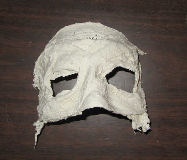 Puso la máscara de yeso / molde en un lugar tibio para terminar el curado / secado. En dos horas estaba listo para el siguiente paso. La foto de mi molde real se ve Frenkensteinianos. No era un problema, sin embargo.