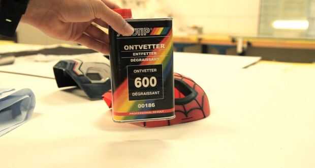 Limpiar la pieza con agua y jabón y luego limpiarlo con un removedor de grasa y asegúrese de que su superficie es totalmente seco y libre de polvo.