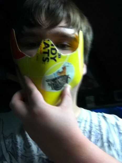 Primero, cortar el plástico a la forma de una máscara. Luego calentarlo a la forma básica de la cara.