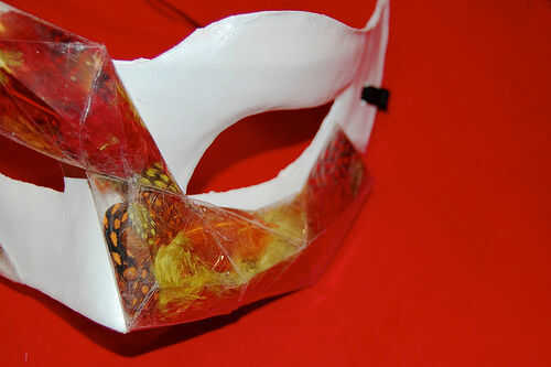 mi amigo lanzó una fiesta de carnaval este sábado, con granos y torta del rey. sin embargo, ella lo hizo, pedir que gente vestido para arriba o usar máscaras. ya que mi armario ha acabado compuesto por, al parecer, sólo valores de escala de grises, opté por la máscara. Empecé comprando un formulario en papel maché de la tienda de arte y corte hasta algo manejable. entonces fotografió y modelar los resultados de rhino, añadiendo una "jaula" de triángulos sobre un ojo, a través y debajo de la otra. me puso hacia fuera estos triángulos en 2d y corte de transparencias usando mi cortador. he montado las piezas con cinta scotch y llena la forma de plumas. Finalmente, pega la forma de la máscara base con algunos sobo y agregó una banda elástica. una gran cantidad de maquillaje y unos tacones más tarde, estaba listo para la fiesta.