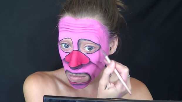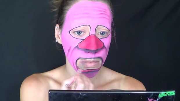 GTAV online payaso maquillaje y máscara de hokey inspirado en H2O delirante.Paso 1: comenzar con el payaso Asegúrese de ocultar tus cejas si son oscuros. (mina son de color negro)tomando una pintura cara blanca puso dos grandes círculos alrededor de