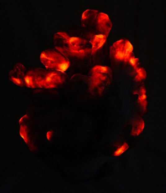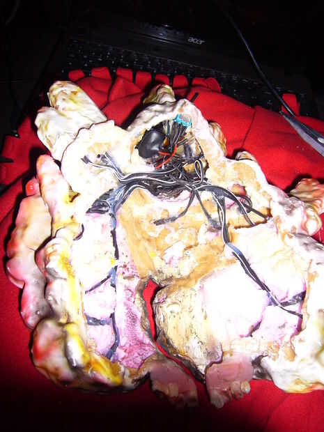 para conseguir este efecto tenía que poner 25 organge LED ´s dentro de la máscara.