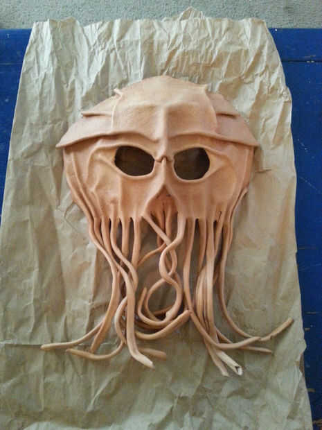 En la segunda estancia de ejecución se centró en reiterar la nariz y la frente. después de cinco minutos, comienzan a ramificarse a formar los ojos, tentáculos y otras estructuras faciales. En seguir carreras siga agregando y solidificar los detalles que usted quiere. Como la máscara se seque, comenzará a llevar a cabo su forma cada vez más.