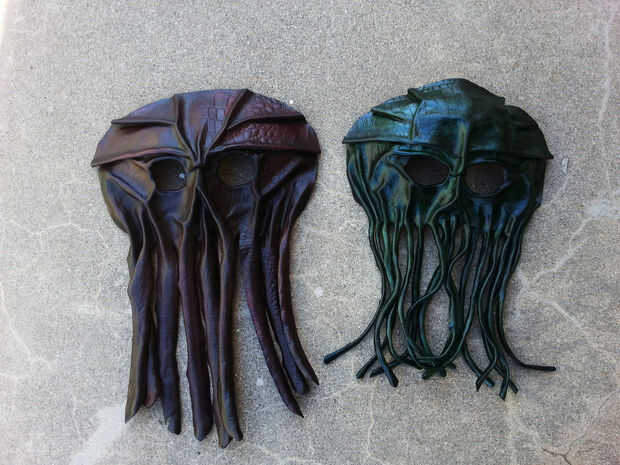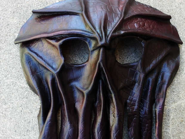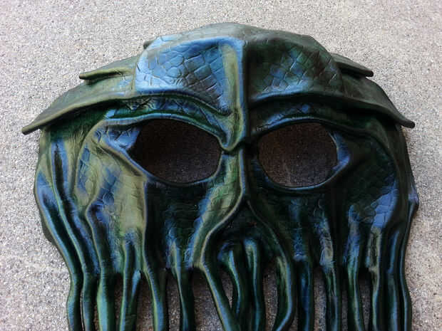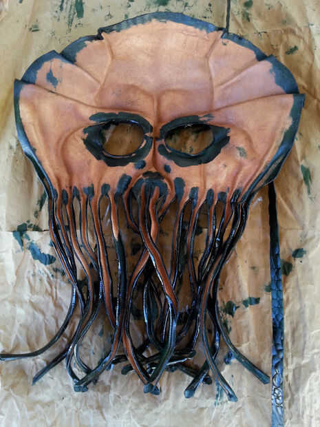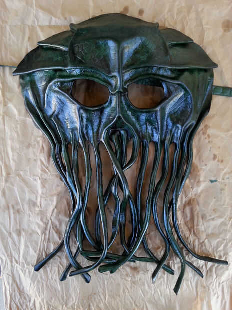 Aplique incluso capas de acabado en la parte delantera y trasera de las correas de la máscara. Espere unos 5 minutos entre cada capa. Dar a la piel un mínimo de dos capas por cada lado. Asegúrate de hacerlo afuera, o en un pozo ventilado zona.