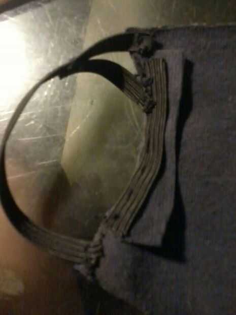 al instalar la Liga en la mascarilla primero preparar dos tiras de cuero negro y coser en el lado de la máscara y coser la Liga 5cm en la parte superior.