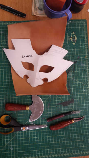 Nota: Cuando comencé esto, descubrí que el cuero sólo que tuve en mano era cuero armor-peso, sobre cuero de 10 onzas. Podríamos recordar que dije que máscara ideal (para mí) pesa 5 onzas. Este cuero grueso va a minimizar mi capacidad para doblar y formar el cuero más tarde!