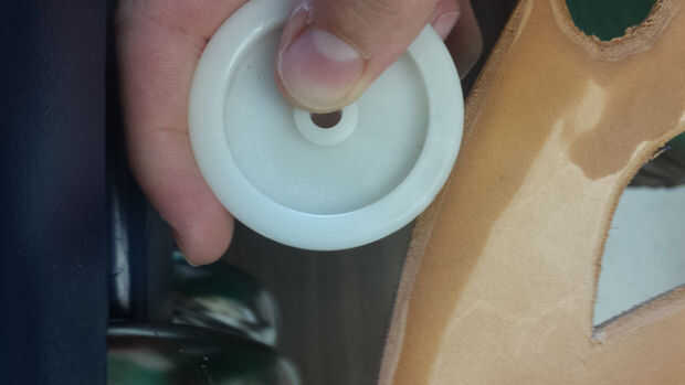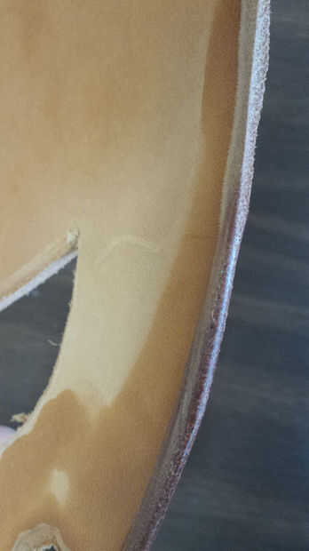 Borde slicking requiere agua! Mojar el borde de la máscara, un poco a la vez y luego ir en él con el impermeable de borde. Tengo el impermeable de estilo "rueda", pero hay alguna clavija de madera que y también algunos de vidrio. Todos funcionan bien. Como cortar el cuero, slicking el borde toma algún músculo. Usted querrá presionar firmemente e ir en la misma área varias veces para obtener un buen bruñido. Es lento que va, pero pena.