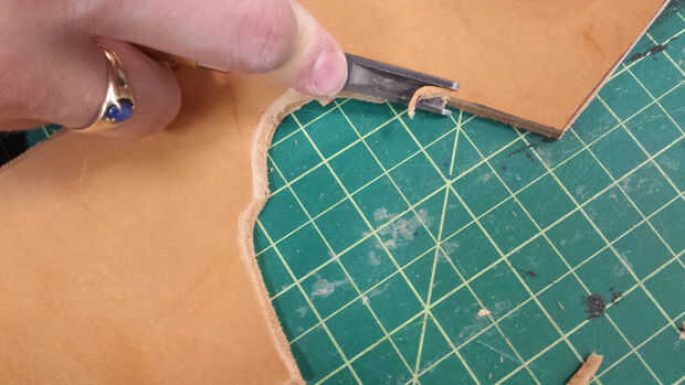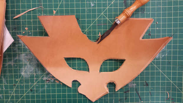 Si eres borde biselado con un cuchillo o un desbastador, convertirlo en un ángulo para que usted obtenga un buen bisel. Si tienes un beveler borde hecho a propósito, se encarga de eso para usted. Este espesor, biselar la parte delantera de la piel y la parte posterior de la máscara. En algunos disolventes cueros usted realmente necesidad de hacer frente. También biselar y pulir los bordes de los ojos.