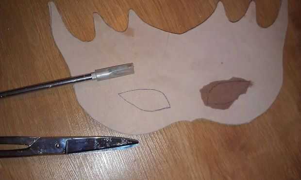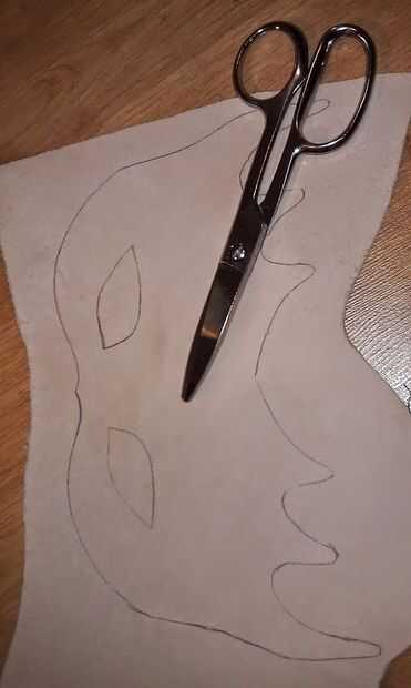 Me encuentro con unas tijeras funciona mejor para mí con este Oz/espesor del cuero. Si estoy usando cuero más grueso su sobre 50/50 x-acto a tijera relación personalmente. Si mojar el cuero (sólo la mirilla) ligeramente doblan la máscara, luego cortar una hendidura en el centro del ojo de arranque, es mucho más fácil obtener su tijera justo en la línea y hacer un bonito borde.