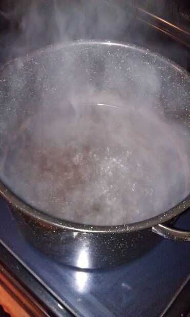 Conseguir una olla (yo uso un esmalte barato que es nunca utilizado para el alimento) y poner una buena cantidad de agua, alternativamente si tienes no hay ollas que son adecuados, puede utilizar el fregadero, si correr el agua caliente hasta el punto donde su cocción al vapor y tan caliente como va ir entonces enchufe hasta la cuenca y llenar. Lo realmente importante que el agua tan caliente como usted puede estar parado, pero no quemaduras/ebullición.