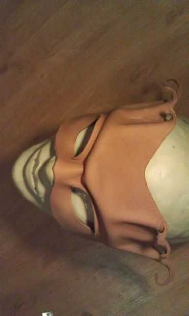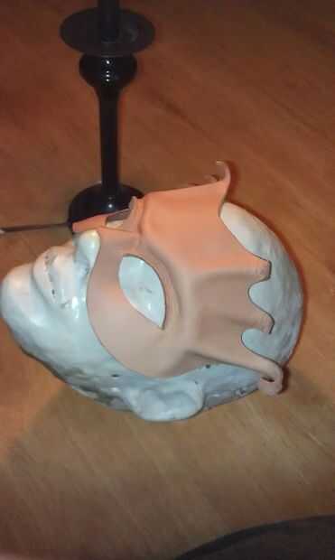 Hacer un agujero de media pulgada en desde el borde, en o un poco ojo arriba de nivel y atar en su cinta, elástico o atar con correa de cuero. Siempre puedes usar una correa y hebilla - y se recomienda para las máscaras más grandes o pesadas (como las máscaras de orco, etc.).