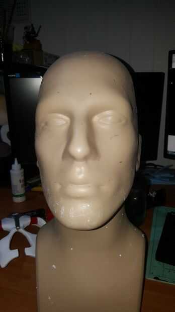1. base/Monte a trabajar. Llegó a mis manos sobre la cabeza de un maniquí de tamaño decente fuera de ebay, no necesario para esto pero útil