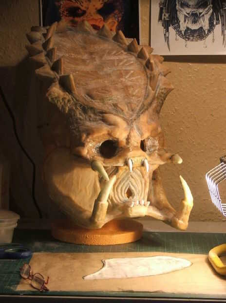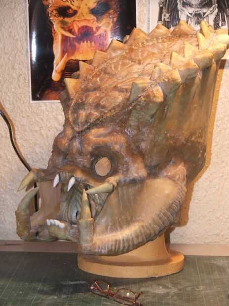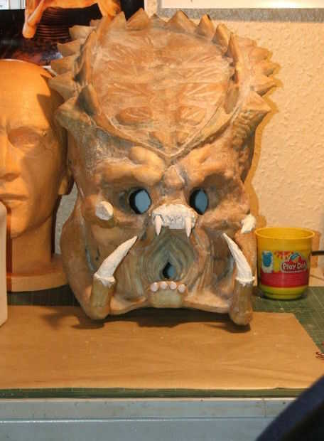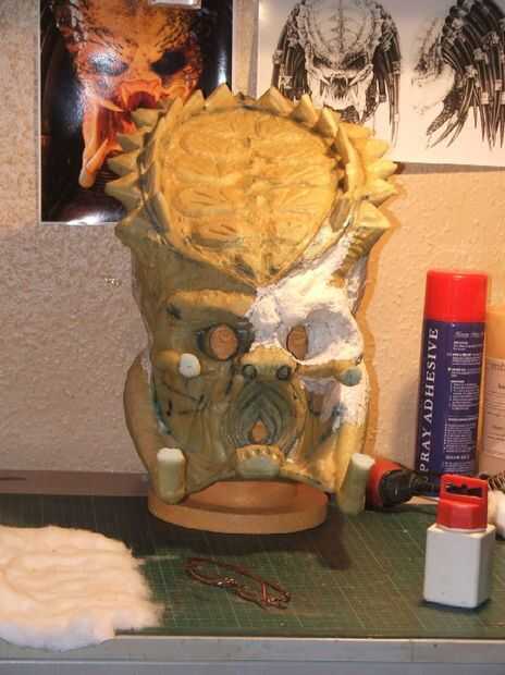 Los dientes más grandes de la mandíbula fueron hechos de espuma con las tijeras. Estos fueron pegados en todo el lugar y los dientes de espuma dados dos capas de látex.