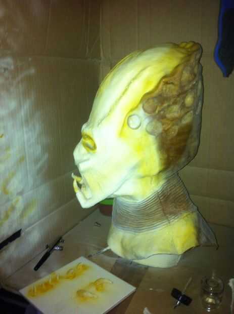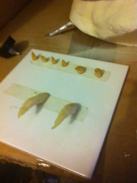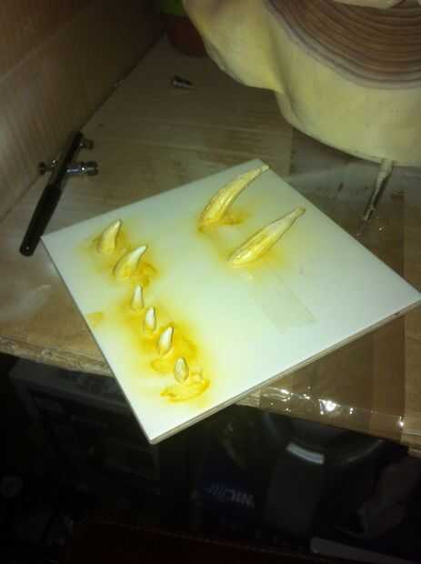 Finalmente cuando todo está seco pone un lenguado pequeño de látex en los dientes y pégalos en, es!! hecho.
