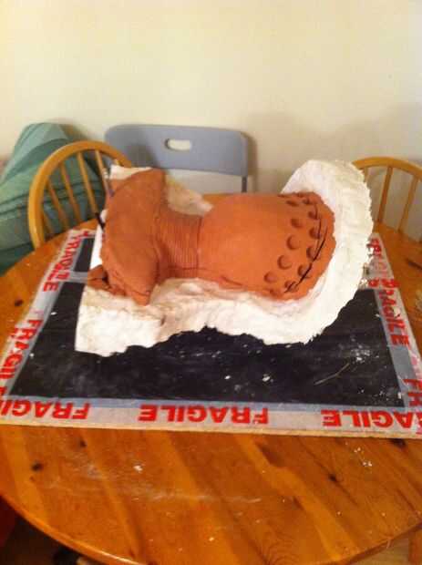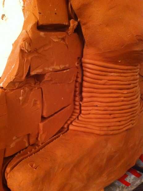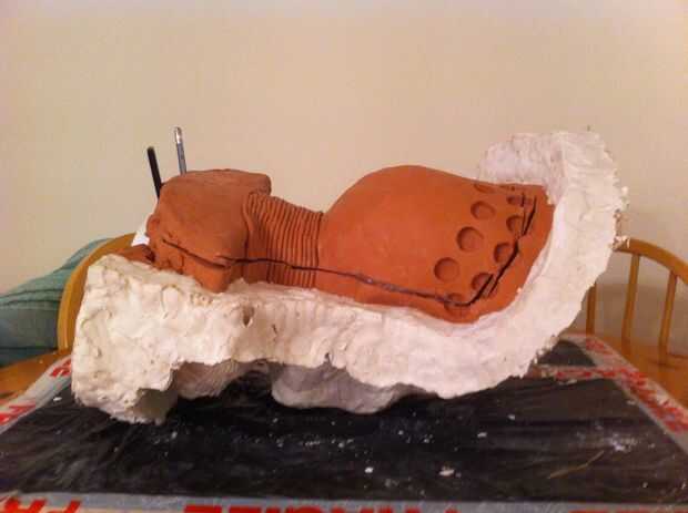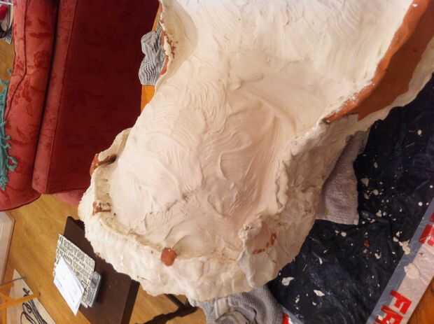otra vez vaselina la pintura sobre la escultura, ahora esto es importante, asegúrese de tener una buena capa de vaselina uno el yeso para la primera parte del molde, si no no será capaz de separar el molde.
