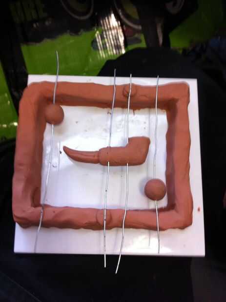 molde de los dientes y mandíbulas así, esto es bastante fácil de hacer, usando un azulejo de poner algunas paredes de barro y utilizando unos clips de papel, doblados hacia fuera para sostener a la altura correcta, mitad llenar el molde con yeso y agitar para sacar las burbujas.