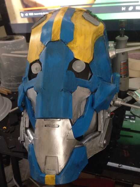 Pintar la máscara con los colores principales que usted eligió, en mi caso es el amarillo, azul y plata.