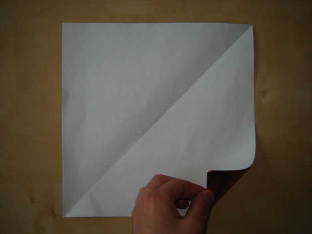 - Pliegue la esquina inferior izquierda hasta la reunión esquina superior derecha, revelar.