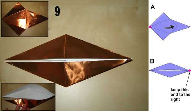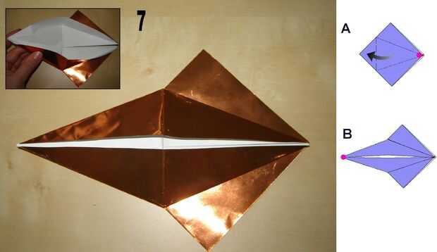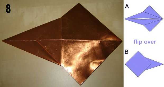 -Doble la esquina izquierda (ahora con forma de un triángulo) a la izquierda. Ver imagen de abajo.