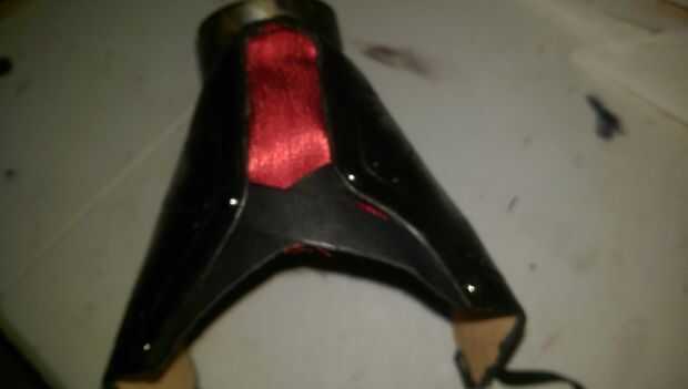 La parte que va debajo de la barbilla es un poco freestyle. Tenía que permitir una pequeña flexión en la mía porque mi cara es tan enorme. Si la mascarilla no se cierra completamente, tome a una pequeña tela y utilizar algunos fabri-tac pegamento a ambos lados de la parte que va debajo de la barbilla. Puedes añadir unas tiras de cuero para reforzar esta parte si quieres, pero son opcionales.