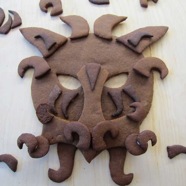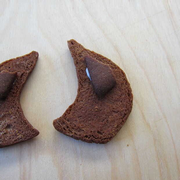 ** Si quieres piezas de nivel con la parte superior (como los cuernos y las orejas) puede poner una pieza extra de galleta en la parte posterior para evitar la inclinación hacia la superficie de trabajo, como se ve en la foto número 11.