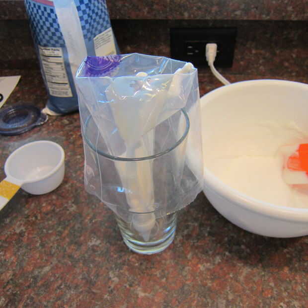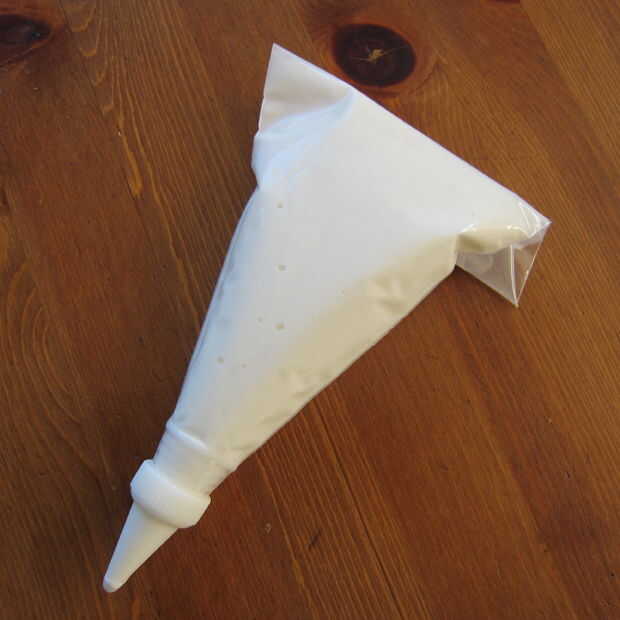 Vierta en una bolsa de hielo preparado equipada con un acoplador y una punta de hielo redondo.